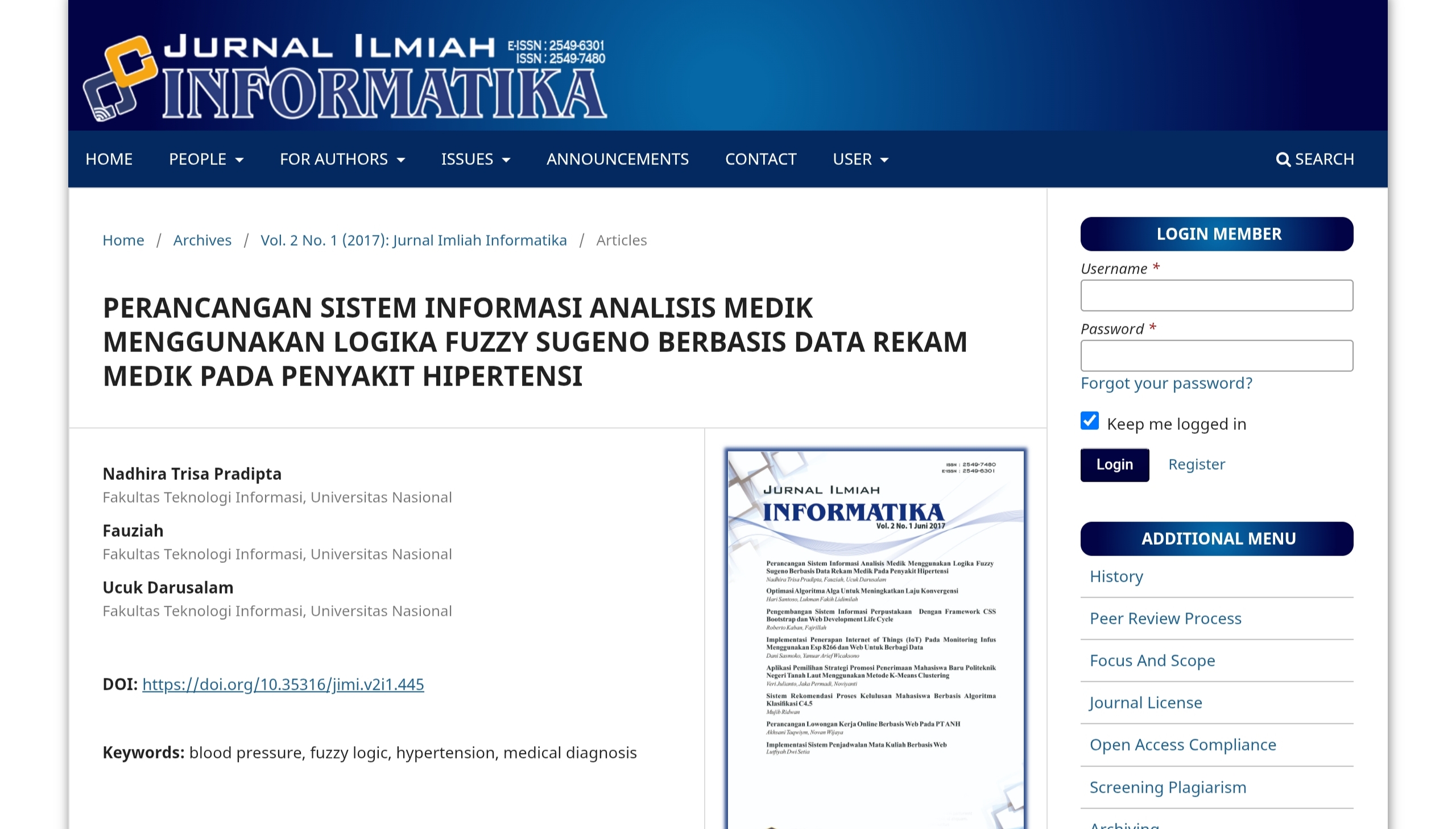 PERANCANGAN SISTEM INFORMASI ANALISIS MEDIK MENGGUNAKAN LOGIKA FUZZY SUGENO BERBASIS DATA REKAM MEDIK PADA PENYAKIT HIPERTENSI