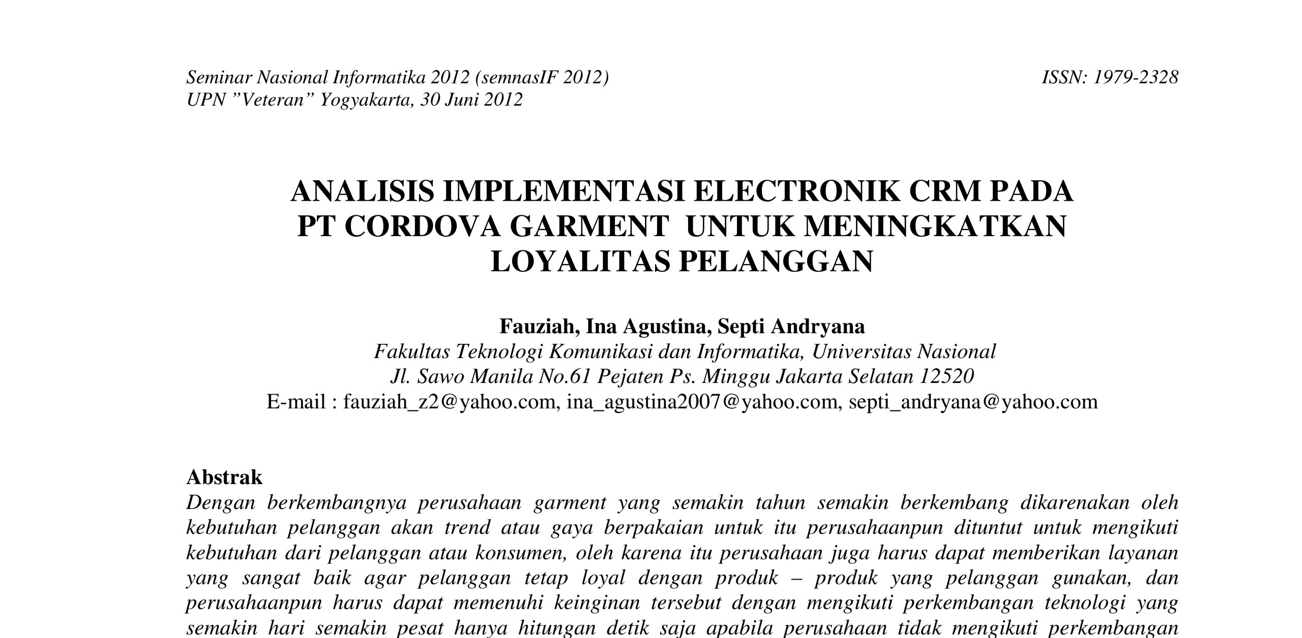 Analisis Implementasi Electronik Crm Pada PT Cordova Garment Untuk Meningkatkan Loyalitas Pelanggan