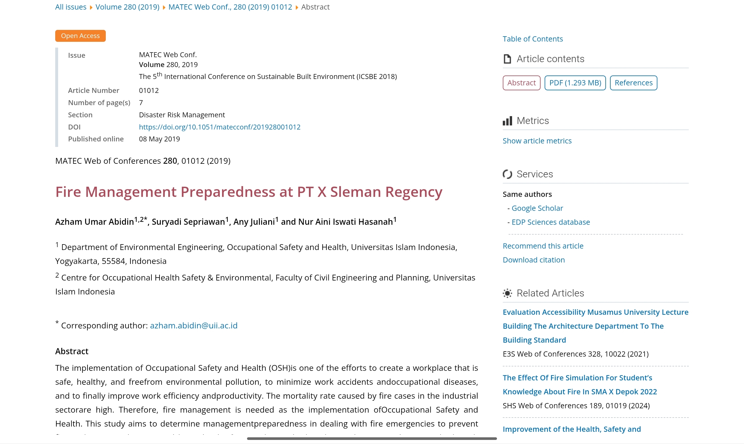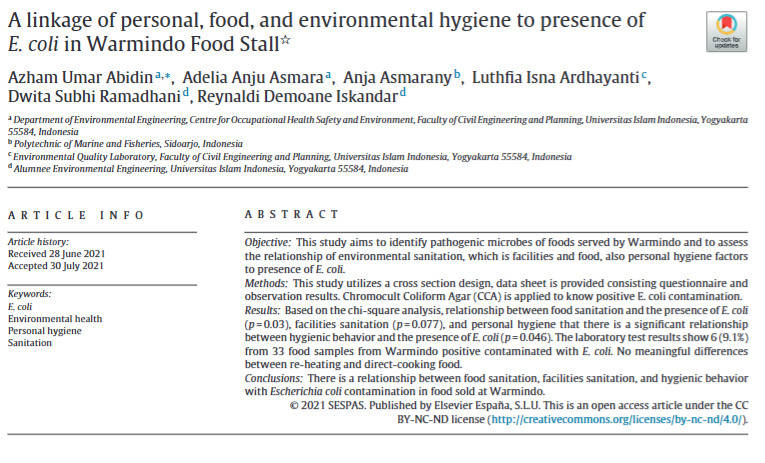 A linkage of personal, food, and environmental hygiene to presence of E. coli in Warmindo Food Stall