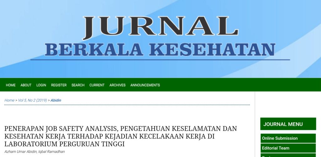 - Penerapan Job Safety Analysis, Pengetahuan Keselamatan dan Kesehatan Kerja terhadap Kejadian Kecelakaan Kerja di Laboratorium Perguruan Tinggi