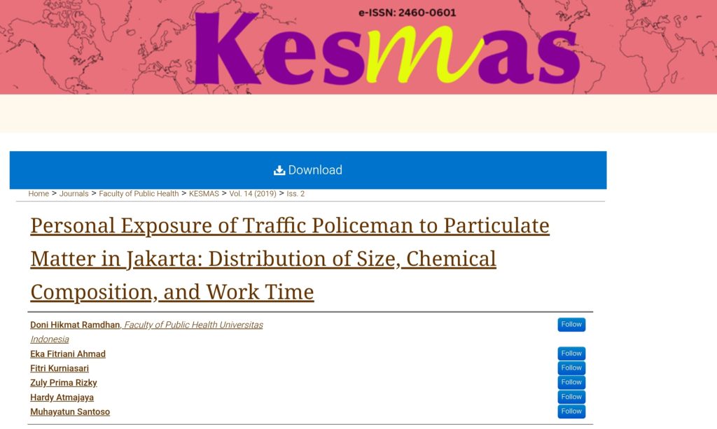 Personal Exposure of Traffic Policeman to Particulate Matter in Jakarta: Distribution of Size, Chemical Composition, and Work Time