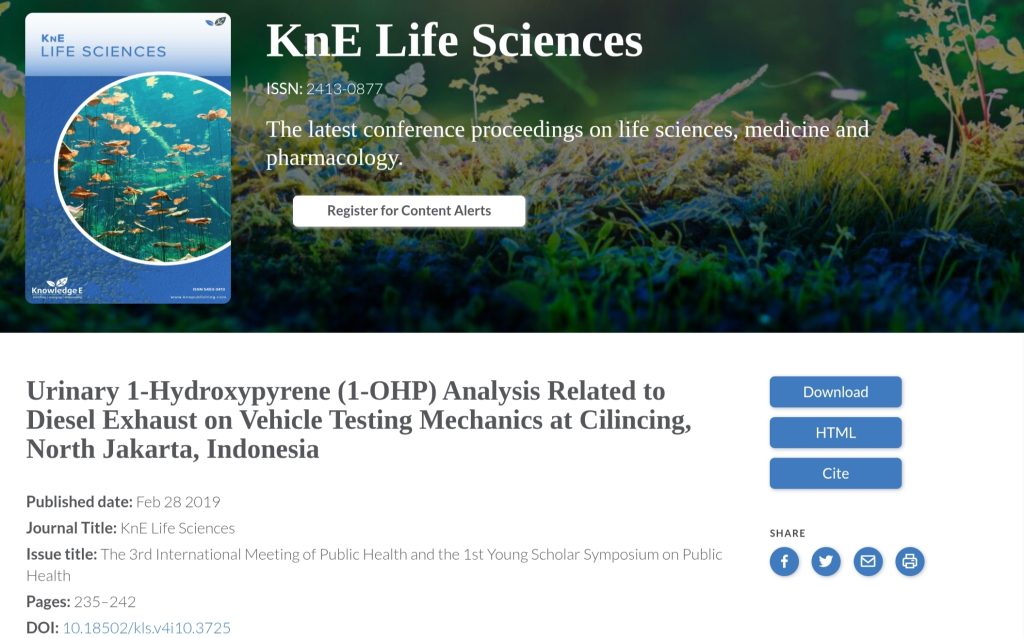 - Urinary 1-Hydroxypyrene (1-OHP) Analysis Related to Diesel Exhaust on Vehicle Testing Mechanics at Cilincing, North Jakarta, Indonesia